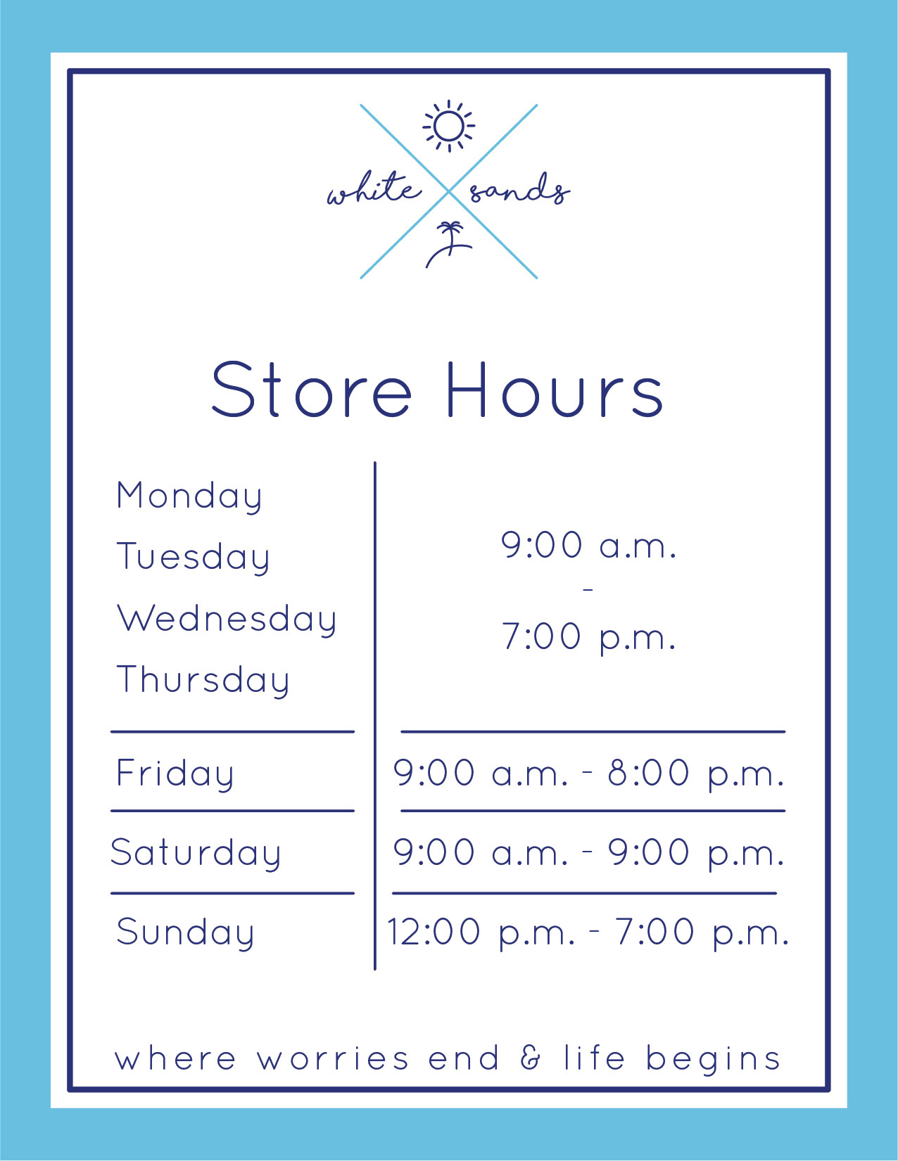 The Concept: The store would sell clothing that had the White Sands brand with the name of the city on it, nicer beachwear, and casual apparel/accessories.